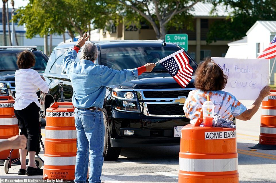 ولدى عودته للمنتجع، وجد ترامب حشدا صغيرا من المؤيدين بانتظاره، كان بعضهم يحمل أعلاما أميركية، بالإضافة إلى لافتات كُتب عليها: “لا يزال رئيسي!” و”فاز ترامب!”.