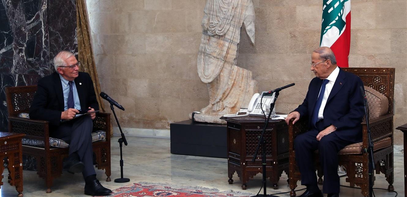 بعد اجتماعه مع رئيس الجمهورية ميشال عون تحدث الممثل الأعلى للاتحاد الأوروبي للشؤون الخارجية والسياسة والأمنية نائب رئيس المفوضية الأوروبية جوزيب بوريل الى الصحافيين فقال ” إن مجلس الاتحاد الاوروبي يدرس خيارات أخرى، من بينها عقوبات مستهدفة، وبالتأكيد نحن نفضل عدم اللجوء الى هذه الحلول وسلوك هذا الدرب. ونأمل ألا نكون مضطرين للقيام بذلك، ولكن هذا كله يعود الى القيادة اللبنانية.”